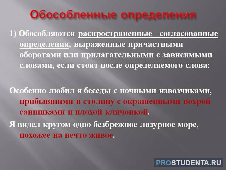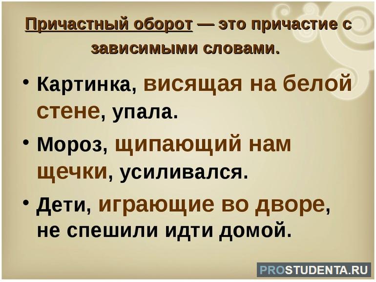 - Причастие и дополнительные слова не разделяются на части определяемым термином.