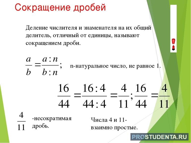 Следует отметить, что при последнем действии дробную часть рекомендуется сократить. Эту операцию требуется делать постоянно, чтобы оптимизировать дальнейшие расчеты. Далее необходимо разобраться с методикой сокращения числителя и знаменателя.